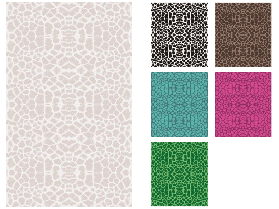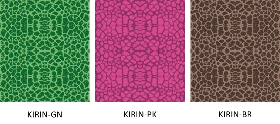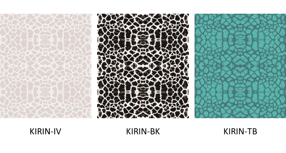 キリンの模様を有機的な幾何学柄としてプリントしました。新しい地模様の柄として、マルチに使って頂きたいデザインです。