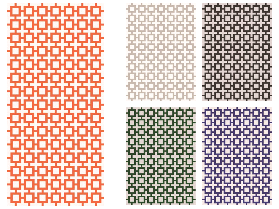 四角い柄が連なるモダンな幾何学柄。プリントの曲がりが目立つ事もあるので、小窓やスロー、クッションなどにお勧めです。