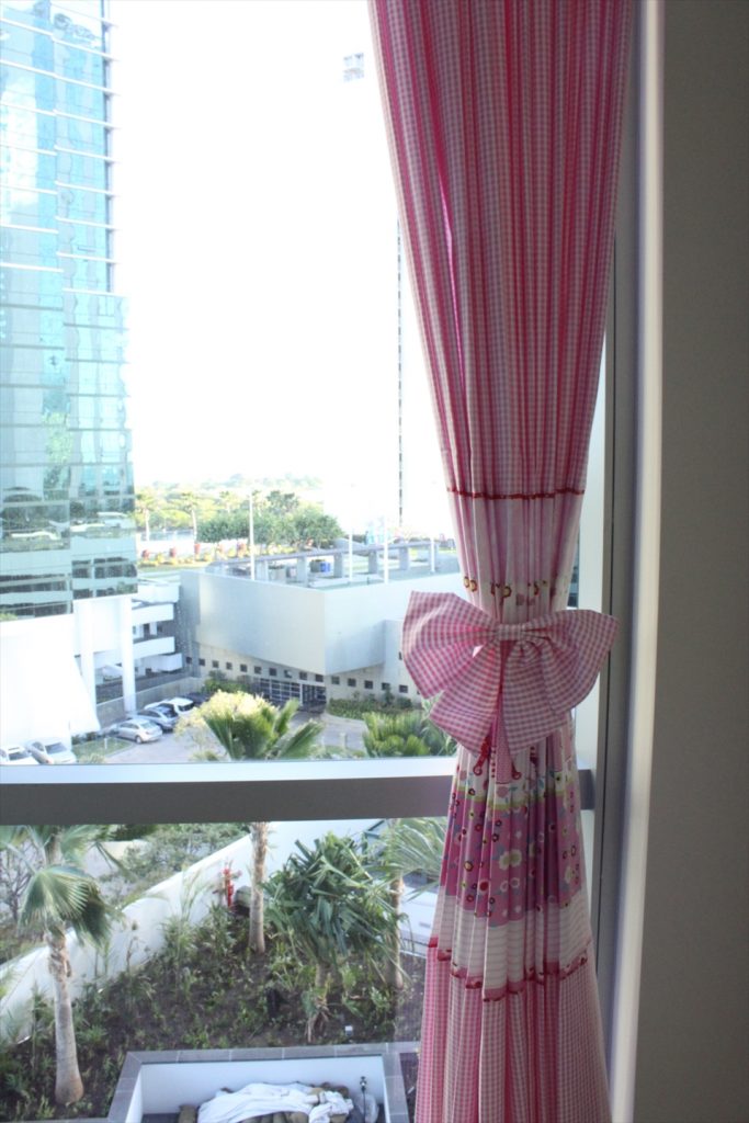 向こうのコンドミニアムは遮光、遮熱の為に濃いフィルムが窓に貼られているので、レースは不要なんです。だから日中でも少し暗いけど、そうじゃないとエアコンが効かずに電気代が大変なんですね。